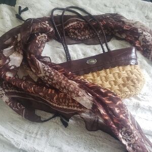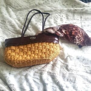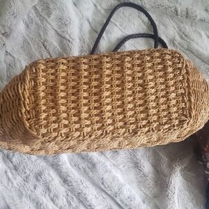 BUENO BOHO BOHEMIAN STYLE WOVEN STRAW FAUX-LEATHER ACCENTS PURSE BAG