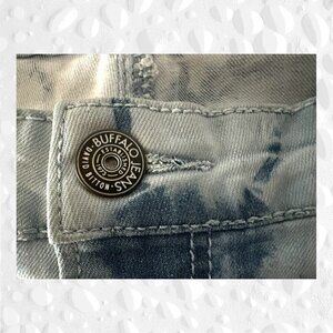 “Step up your denim game with these Buffalo David Bitton tie-dye jeans! The unique blue and white pattern beauties adds a touch of boho chic, while the cropped mid-rise fit keeps things fresh. Whether you’re pairing them with sneakers or heels, that small turnup detail adds just the right amount of charm. Get ready to turn heads!” Perfect for summer adventures or casual Fridays at the office. Grab 'em before they’re gone!”