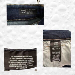Step into edgy sophistication with these BUFFALO David Bitton midrise skinny jeans in the coveted "Jess" style. Featuring a dark wash with distressed rip & repair detailing, these jeans offer a flattering silhouette and just the right amount of attitude.