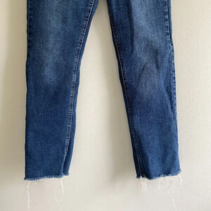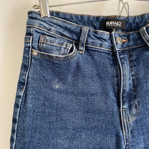 BUFFALO David Bitton Semi High Rise Slim Straight Dark Wash Distressed Hem Jeans