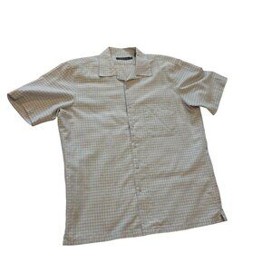 BUGATCHI Men's Short Sleeved Button Down Shirt Sz Large Rayon/Poly Check Pattern