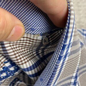 BUGATCHI UOMO Shirt Men Medium M Brown Blue Checkered Button Up Long Sleeve Polo