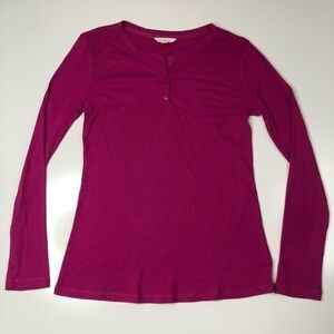 BUNDLE OF 2 Joe Fresh comfy long sleeved shirts. The turquoise one is a baseball design with the two toned arms and a wide scooped neck. The fuchsia pink one is a stretchy ribbed texture in a henley design with buttons up half way. The perfect comfy long sleeve for lounging at home. They are both in excellent used condition with no flaws. Please see photos for measurements and details. Women’s size LARGE (turquoise) and XLARGE (fuchsia).