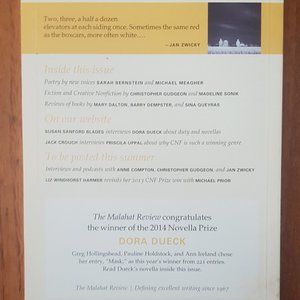 This issue features works from Douglas Burnet Smith, Madeline Sonik, Peter Richardson, Miranda Pearson, 2014 Novella Prize Winner Dora Dueck, more.