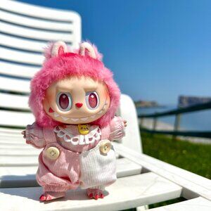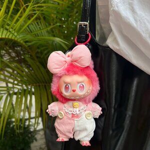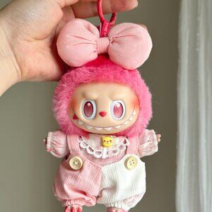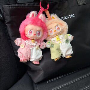 Labubu doll outfit, Labubu cottagecore clothes, pastel Labubu fashion, handmade Labubu outfit, Labubu overalls set, Labubu cosplay clothes, POPMART Labubu fashion, doll clothes bundle, Labubu pink green outfit, cute Labubu accessories, Labubu head bow, vintage doll clothes, Labubu collector fashion