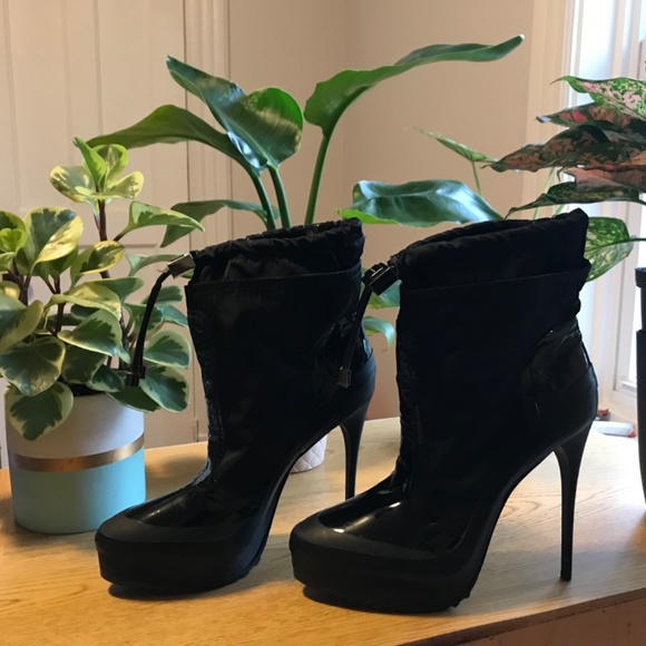 These UNIQUE GORGEOUS ONE OF A KIND AUTHENTIC BURBERRY BLACK BOOTIE HEELS WILL CATCH EVERYONES ATTENTION. These authentic beauties are super rare to find and retail over 800$ Plus!