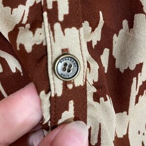BURBERRY BRIT- 100% Silk Brown And Beige hounds tooth Knee Length Shirt dress