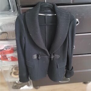 BURBERRY BRIT Toggle Front Black Wool Jacket Coat Knit Shawl Sz 4 US 38 EU