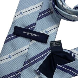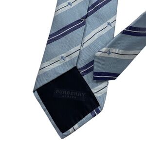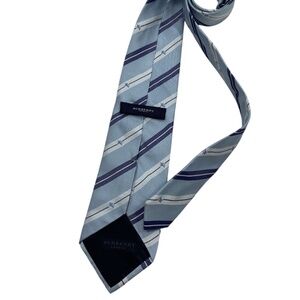 BURBERRY Blue Striped Monogrammed Logo Silk LUXURY Tie ITALY