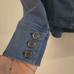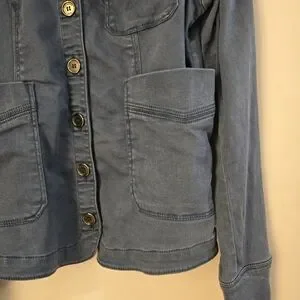 Front button down. Front pockets.