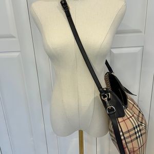 BURBERRY Chocolate Brown Leather Haymarket Check Coated Canvas Chain Strap Hobo