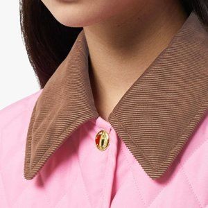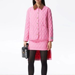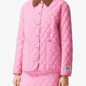 BURBERRY Diamond quilted jacket XS BUBBLE GUM Pink brown corduroy collar ๐ HP