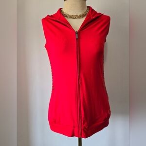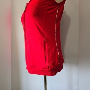 BURBERRY GOLF Lightweight Red Sleeveless Zip-Up Vest With Hood. Size Large