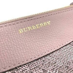 authentic BURBERRY House Check Sequin Peyton Bridle Crossbody Clutch Bag Pink. This stylish bag is crafted of Burberry signature house check canvas. The bag features an overlay of pink sequins on the front, pink leather trim and a cross body leather shoulder strap with brass chains. The top zipper opens to a brown fabric interior with black leather card slots. This chic crossbody clutch is ideal for day or evening wear with the iconic style of Burberry!