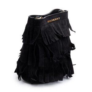 BURBERRY PROSUM BLACK SUEDE FRINGE CROSSBODY BAG