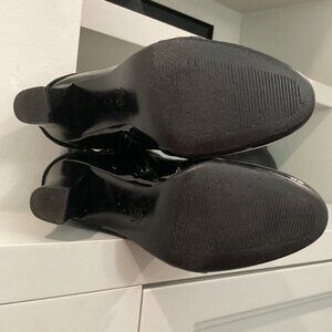 BURBERRY Patent Leather Buckle Heel Black Glossy Boots Size 6/6.5