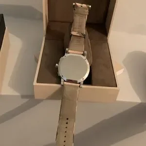 Authentic and gently used as shown in the last few pictures. In perfect working condition. Only thing, second hand does not work but the minute and hour hands do.