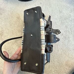 Burberry rare unique chocolate brown plaid check nova print cloth bag purse