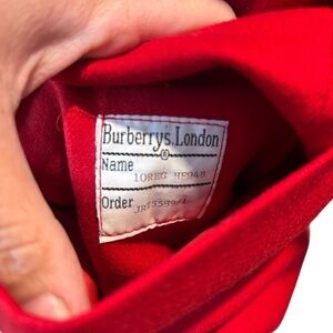 Burberrys vintage 100% wool blazer made in England NO size tag fits like a large pure wool vintage shoulder pads 2 gold buttons featuring the burberry knight 1980's blazer Pit to pit 20” Shoulder to hem 29” Sleeve length 20” All measurements are approximate minor imperfection (see pictures)