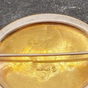 Truly timeless and deeply pretty, this elegant mid-century vintage etched gold-filled oval-shaped Burkhardt brand brooch is an instant heirloom piece that you're likely to get a lot of wear out of.