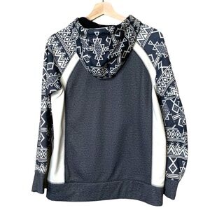 BURTON Durable Goods Heron Gray Cream Aztec Print Hoodie Kangaroo Pocket US Sz S