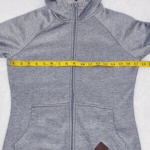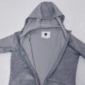 BURTON Gray, fleece lined, front pockets, thumbs hole, hooded, zip-up jacket, size XS. Nice soft, thick and stretch fabric. Great pre-loved condition, looks new!