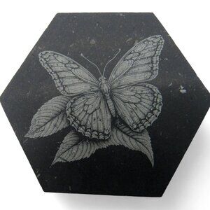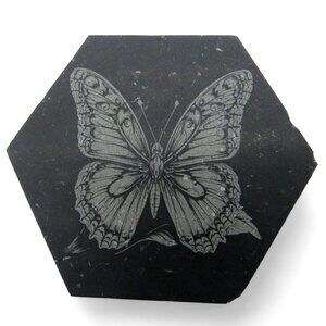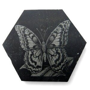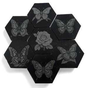 BUTTERFLY and ROSE Tiles Engraved Natural Stone Set of 7 Hexagon Mosaic