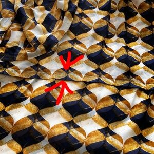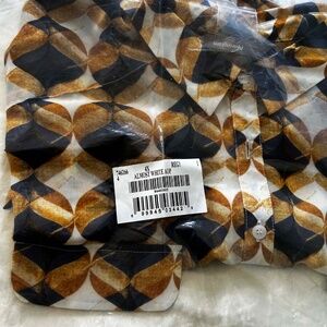 BUTTON DOWN BLOUSE, OFF WHITE (PLAID GOLD/NAVY/WHITE), SIZE 4X, POCKETS, LONG SLEEVES WITH CUFFS, PENNINGTONS, IN ORIGINAL BAG, TAG ON, NEVER WORN