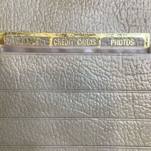 Gold foil leather stamp reads: Buxton Oasis Genuine Leather Made in Canada