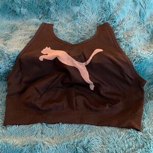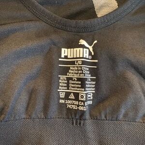 This is a sports bra from Puma in size Large. Black with the gray Puma logo on the front this is a stretchy, supportive bra while still offering comfort. Only worn a few times.