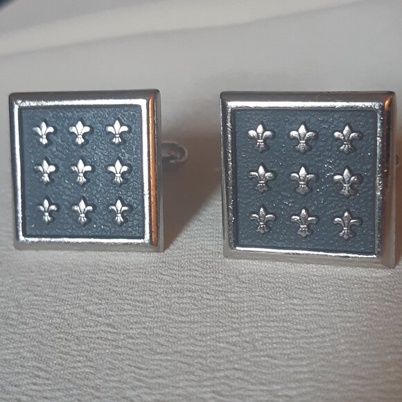 ⚡️BUY 3 for $55⚡️ Vintage Fleur De Lis Sliver Tone & Black Cuff Links
