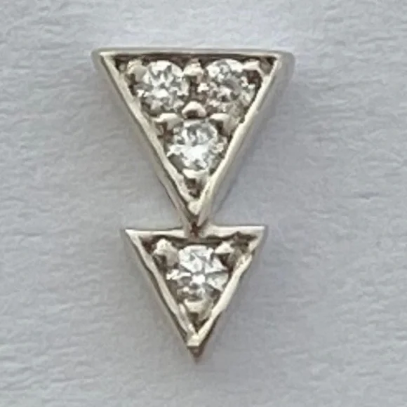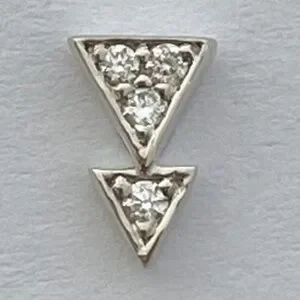 This BVLA piece features two vertically connected triangular elements crafted from white gold. Each triangle is adorned with small diamonds in a pavé setting, creating a sparkling effect. The minimalist design and monochromatic color scheme offer a contemporary aesthetic.