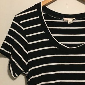 Good preowned condition, short sleeve, black and white striped, fitted tee by Zenana Outfitters made with a natural rayon blend. Soft and stretchy.