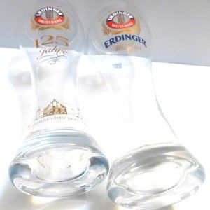 BX63 PAIR of ERDINGER Beer Glasses 125th Anniversary German Beer Weissbrau