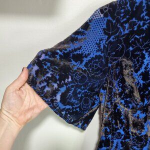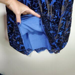 BY ANTHROPOLOGIE Mock-Neck Velvet Mini Dress Open Back Burnout SS Blue Women's 4