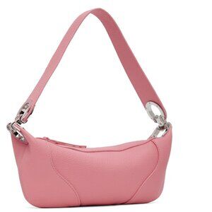 Grained bull leather shoulder bag in pink. · Fixed shoulder strap · Zip closure · Leather logo patch at interior · Cotton twill lining in beige · Logo-engraved silver-tone hardware · H5.5 x W11 x D2.75 in Supplier color: Pastel pink