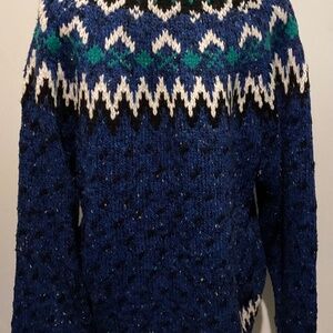 PULLOVER WINTER BY ‘’ PETER ENGLAND ‘’’ SIZE MEDIUM ,, GORGEOUS BLUE COLORS PREOWNED NOT WORN ,,