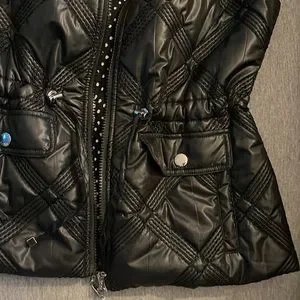 Beautiful quilt print zip up high color silver button up and singe in the waist size small