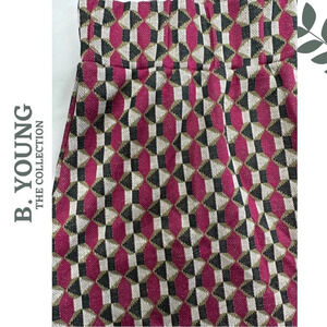 B-Young Santi Skirt Festival Fuschia Metallic Pink Green White Knit Size Small