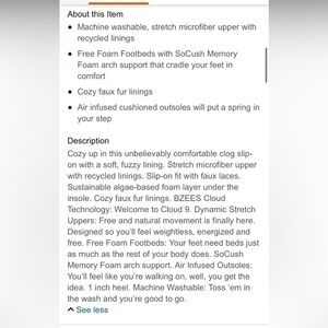 Excellent preloved condition. Slip on style, machine washable, faux fur lining. Shoes that feel like slippers!!