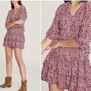 🌸 Ba&Sh Pink “Nina” V-Neck Tiered Mini Dress – Size M 🌸