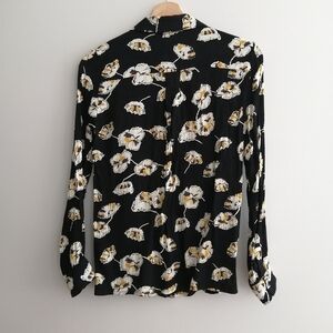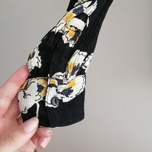 Ba&Sh Una Plisse Pleated Floral Button Up Black w Cream Yellow Flowers XS