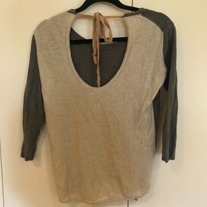 Babaton 2-tone open backed 3 quarter sleeve top with tied back