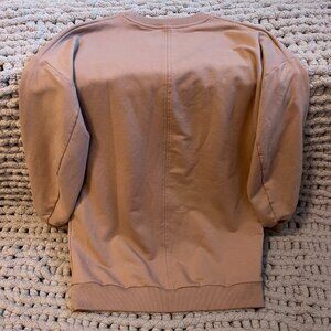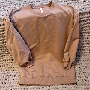Incredibly comfy crew neck sweatshirt. Made with a drop shoulder and statement sleeve. Fabric is super soft, drapey fleece material.