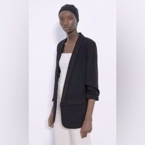 Babaton Aritzia Black Serif Collared Open Face Exposed Blazer Jacket