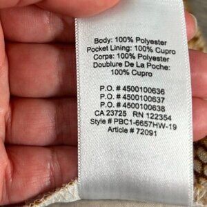 Content: 100% polyester; Pocket lining: 100% cupro.