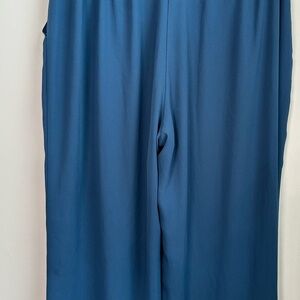 These are wide-leg trousers with an elastic waist and slash hand pockets.