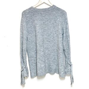 This sweater is knit with a plush yarn that blends wool and alpaca for warmth. The dropped shoulder is specially tailored for a flattering, feminine fit. Ties at the cuffs let you play with the sleeve volume.