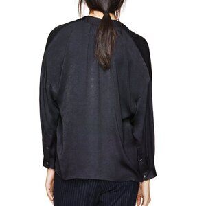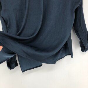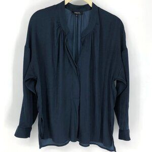 Babaton Aritzia Navy Blue Patrick Long Sleeve Notched Neck Blouse XS