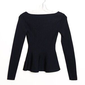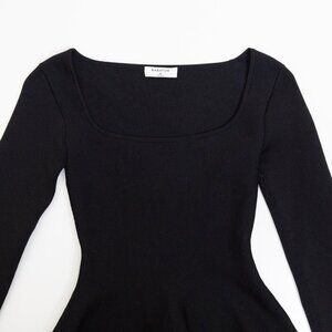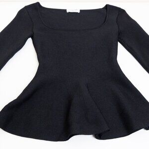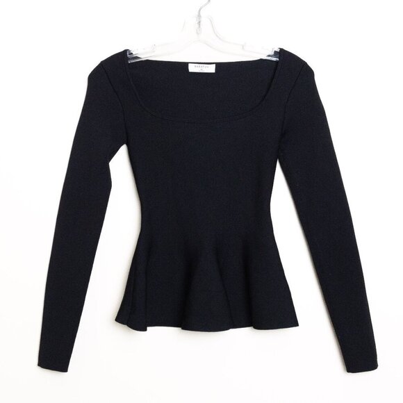 Babaton Aritzia Sculpt Knit Long Sleeve Peplum Top Square Neck Black